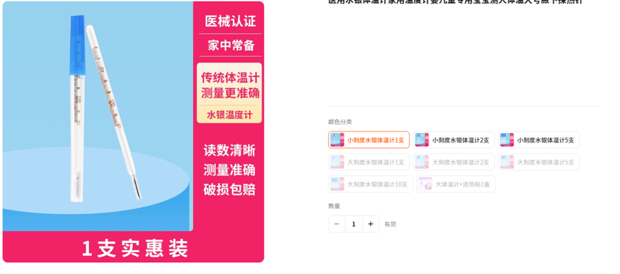 “直至今日,也没有规定说明年不能卖了,只是说不能生产,网上却误导消费者以为明年开始就买不到含汞体温计了。”一家标称发货地位于江苏泰州的医疗器械网店负责人告诉记者,最近生意的确好了起来,后台冒出一大批消费者来询问还有没有货,他感到很奇怪,这么一个普通的产品居然一炒作就火了。更让他感到惊讶的是,很多同行明明有库存,却搞饥饿营销,隔三差五挂出“断货”状态,让消费者“预定”,结果,一些消费者还真相信,居然高价下了订单。